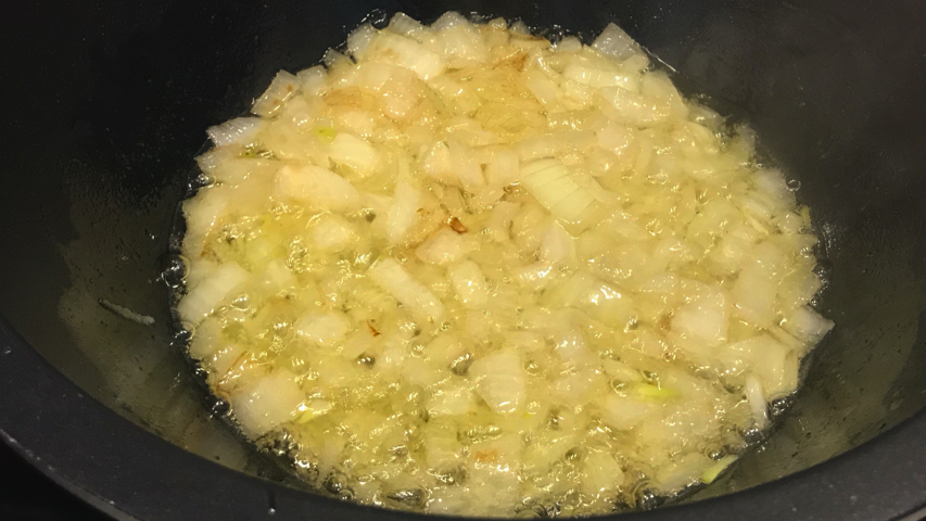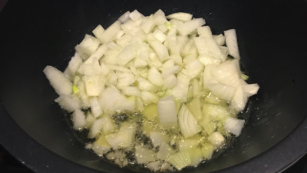 Sofríe la cebolla moviéndola durante unos 10 minutos. Debe tomar color.