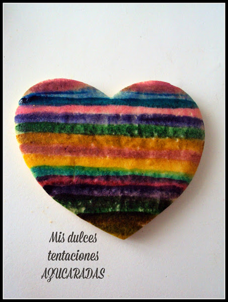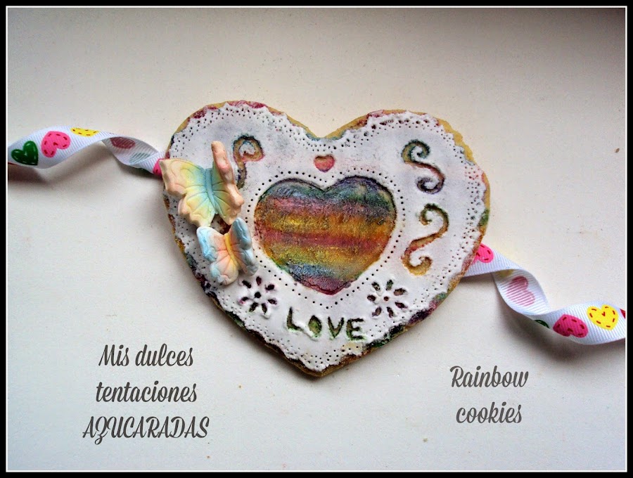 Aún así después de una semana de galletas de comunión necesitaba desconectar y hacer algo diferente,pero a la vez he estado bastante cansada así tenía que buscar una forma distinta de glasear y colorear una galleta sin la pesadez de tener que llenar las mangas pasteleras con mil colores distintos,así que se me ocurrió está galleta arcoiris.