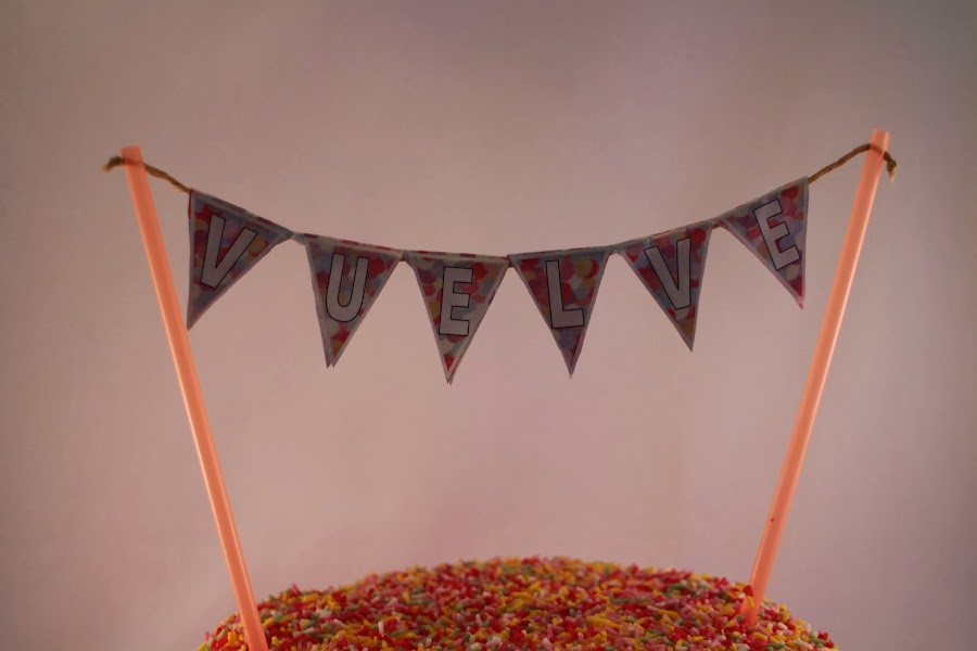 Y ya, sólo queda colocar "el mensaje". Como esta tarta fue un encargo para una fiesta de despedida de una persona que se va a trabajar a México, y fue su mujer, la que se la regaló, el mensaje estaba claro: V U E L V E colocado en unas banderitas.