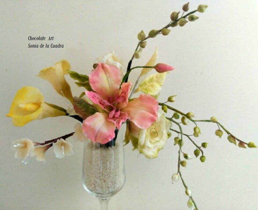 Este ramo está hecho 100% con chocolate. Increíble pero cierto. Un material muy noble que se trabaja muy bien.
