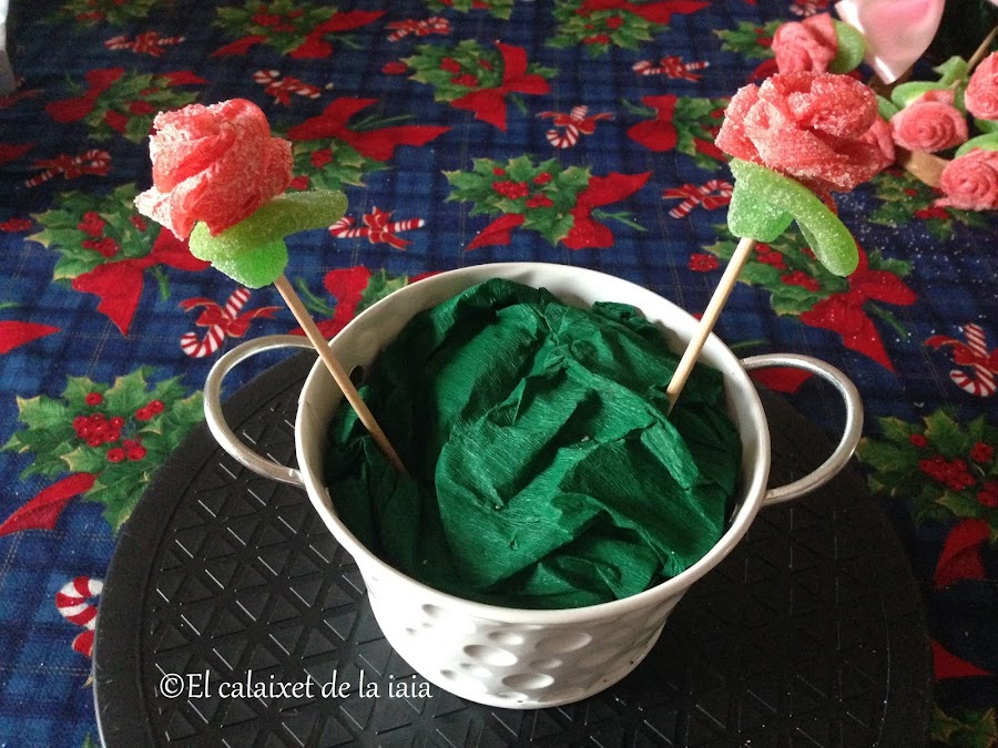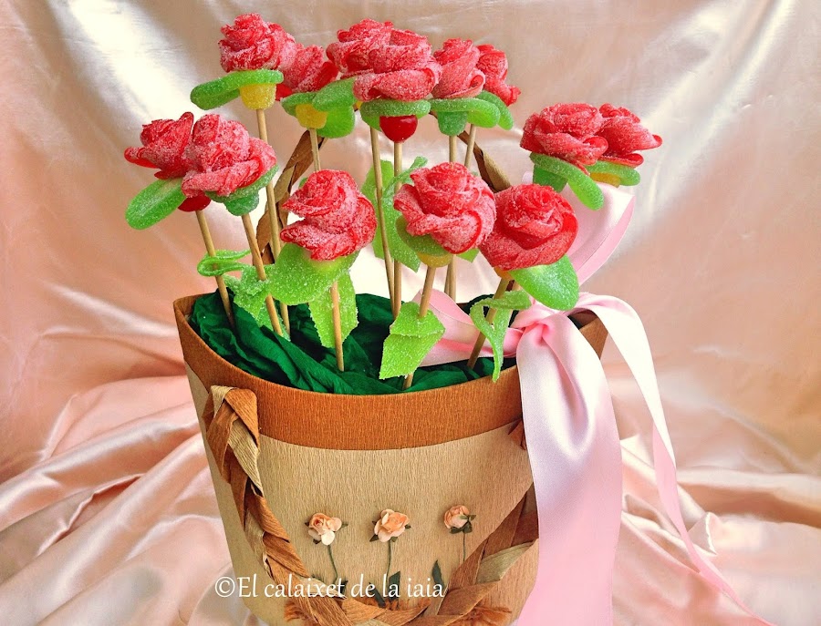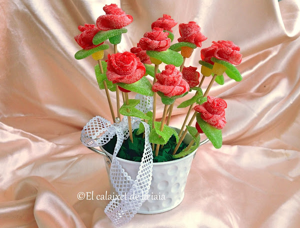 Pues no, no estamos en mes de flores, porque Febrero no lo es, pero....podemos fabricarlas y si encima son de dulces, mejor que mejor ¿no?