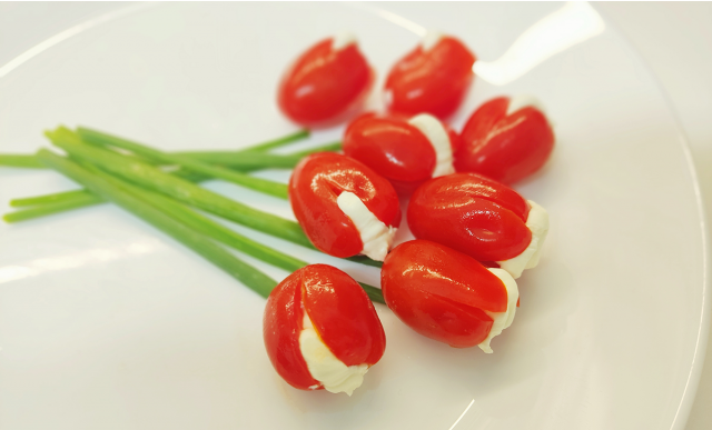 Tomates cherry alargados (tantos como quieras, según como de grande quieras hacer el ramo)