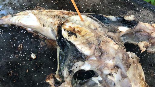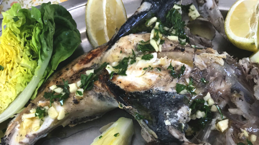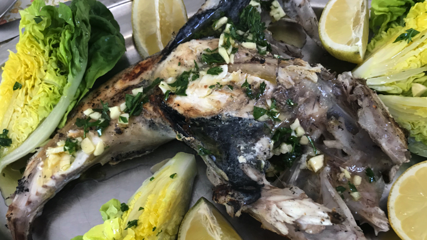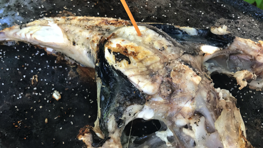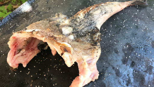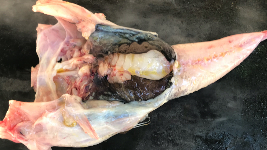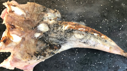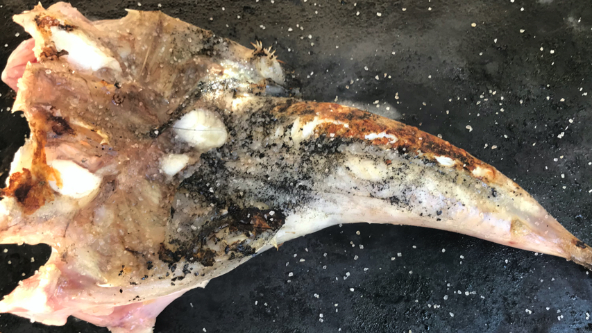 Coloca el rape en la plancha con la panza hacia arriba.