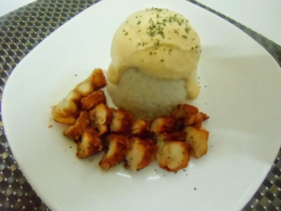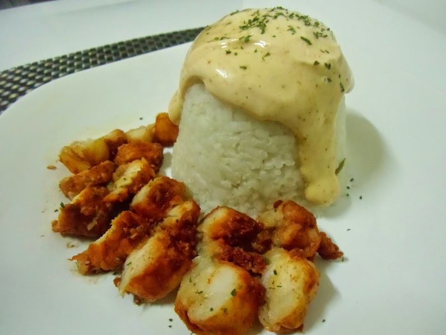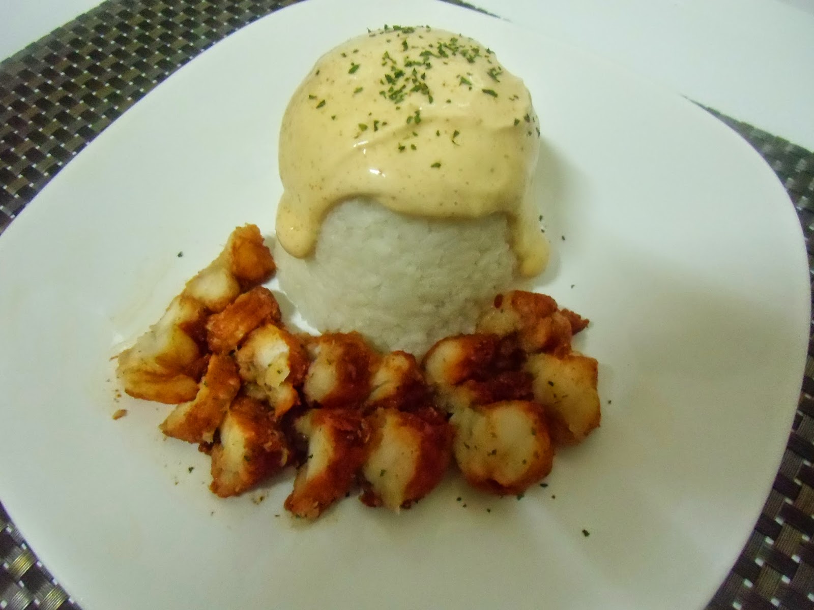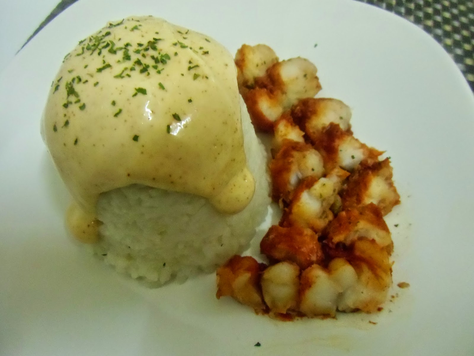 Retiramos del fuego y dejamos enfriar un poco antes de cortarlo en rodajas de medio centímetro más o menos, emplatamos y servimos acompañado de arroz y salsa rosa por ejemplo.