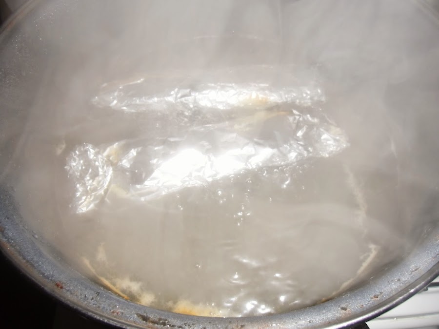 Las envolvemos bien dentro del papel de aluminio y las ponemos a cocer en una olla con agua hirviendo y un puñado de sal durante 5 minutos.