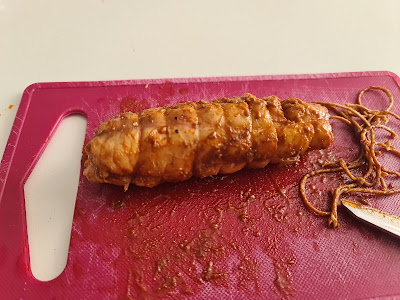 8. - Le quitamos la guita, cortamos en rodajas y servimos acompañado de una salsa rosa y lechuga.......