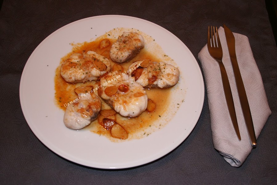 Colocamos el pescado en los platos y vertemos la salsa por encima, decoramos con un poquitín de perejil bien picado, ¡y a comer!