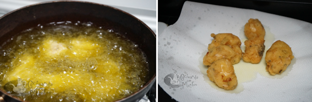 Para que os queden crujientes por fuera y tierno y jugoso por dentro, tenéis que pasarlos por harina, quitar el exceso y freírlos en aceite muy caliente. Se comen bien calientes. Se puede utilizar harina especial para fritura.