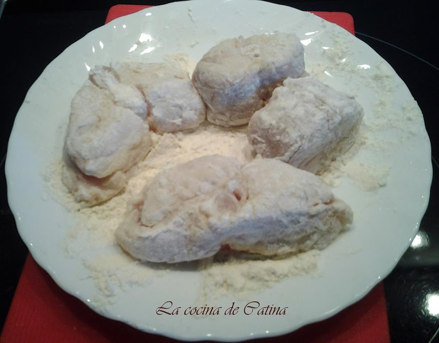 Preparamos un plato con harina para rebozar el pescado. Calentamos 4 cucharadas de aceite en una sartén, enharinamos el pescado y lo freímos por ambas caras. Lo dejamos escurrir sobre papel absorbente de cocina para que suelte el exceso de aceite.