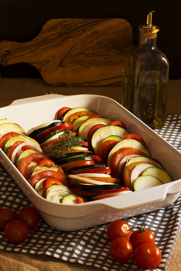 ¿Queréis sorprender a vuestros invitados con un plato rico, sano y colorido? Tan solo necesitaréis unas hortalizas bien frescas, un buen aceite de oliva virgen extra, unas hierbas aromáticas y un poco de gracia a la hora de colocar los ingredientes... si además tenéis la suerte de hacerlo en una fuente tan bonita y versátil como ésta de Emile Henry, mejor que mejor, ya que disfrutaréis de una cocción lenta y uniforme, de una presentación excelente y además mantendréis la comida caliente durante mas tiempo. ¡Para mi Emile Henry es sinónimo de calidad y de buen gusto!