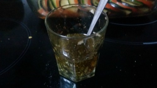 - Hacer el adobo, picando muy pequeño un diente de ajo. Ponerlo en un chorro de aceite y añadir tomillo.