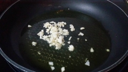 - Poner una sarten el aceite a calentar. Cuando esté caliente, añadir el ajo