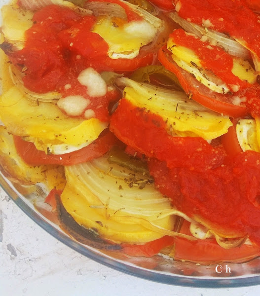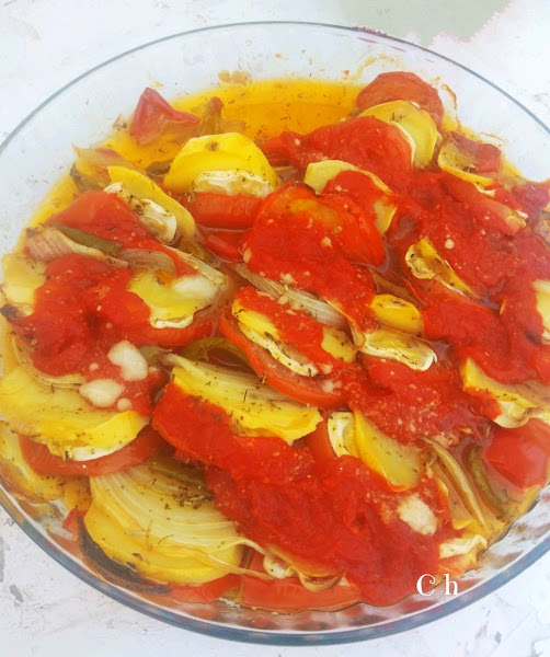 3° Colocar las verduras en un recipiente para horno de forma bonita y ordenada