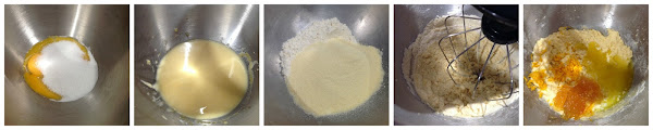 Añadimos la harina con la sémola y la sal incorporando bien. Agregamos la ralladura de naranja, la mermelada y la mantequilla derretida, batiendo hasta integrar bien.