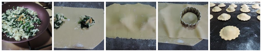 Cortamos la masa en 3 trozos y pasamos cada trozo por la máquina unas tres veces.Dejamos la placa de pasta sobre papel de hornear colocamos el relleno y tapamos con otra placa de pasta.Con un corta pasta cortamos los raviolis.Volvemos a dejar sobre papel de hornear hasta que que sequen un poco.