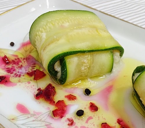 Raviolis de calabacín rellenos de brandada de bacalao,