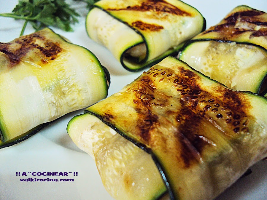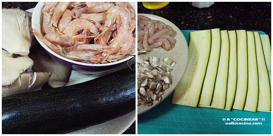 Simplemente unas tiras de calabacín y un sencillo y rápido relleno de setas y gambas al ajillo ...; es lo que necesitamos para elaborar estos apetitosos raviolis que no van a dejar a nadie indiferente.
