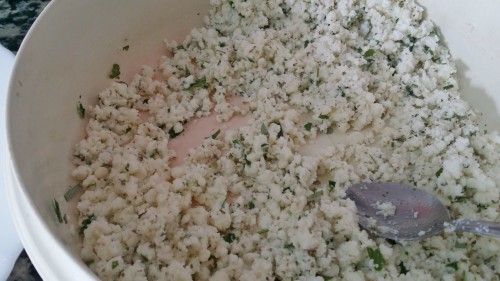 Mientras, en un bol, preparamos el relleno. Mezclamos la ricota con los 40 g de queso parmesano, el orégano y el perejil picado. Salpimentamos.