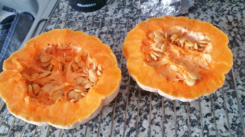 Horneamos la calabaza durante 20-25 minutos o hasta que esté dorada.