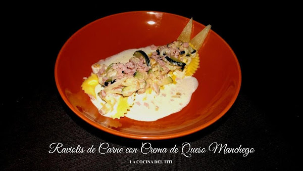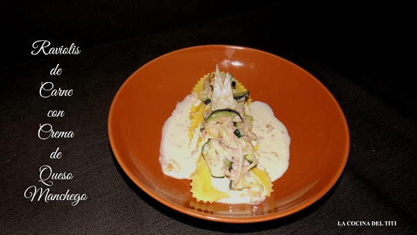 Hoy es turno de pasta y que maravilla de receta la que vamos a realizar con una maravilla de ingredientes en el que vamos a llevar una pasta fresca con raviolis de carnes y para la crema vamos a intensificar el sabor de un buen queso manchego curado de pura oveja con la suavidad de un calabacin verde y del jamon york.