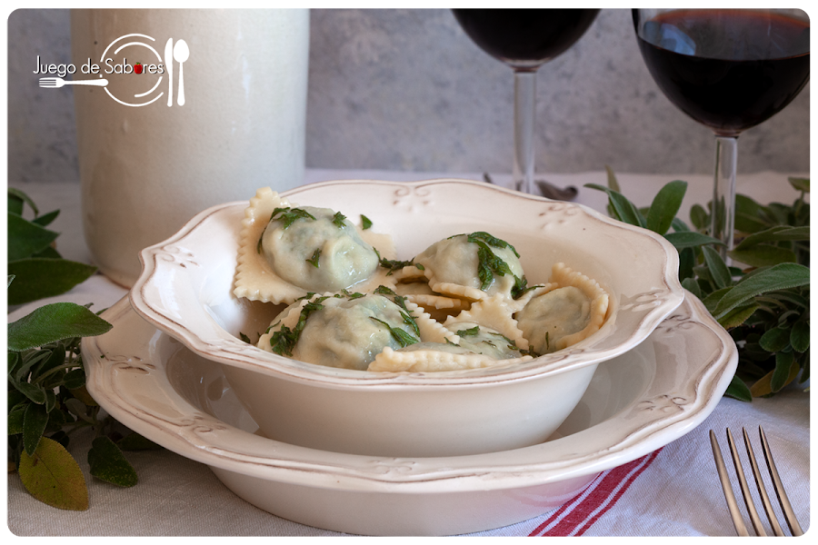 ¿Sabéis cuando una se levanta de la cama por la mañana con la idea fija de querer comer un plato concreto? Pues eso es lo que me ocurrió el otro día. Me apetecía comer unos buenos raviolis de espinacas con queso y eso suponía arremangarme, ponerme manos a la obra y pasarme unas horas en la cocina. Y es que a mí los raviolis me gusta trabajármelos: hacer la pasta, hacer el relleno (cada vez uno distinto) y también hacer la salsa idónea. Y eso, queridos amigos y amigas, requiere tiempo y el tiempo es algo relativo. Hay quién le da mucha importancia (ya sabéis “Time is Money”) y otros que prefieren gastarlo en cosas que les llenen. Y os aseguro que estos raviolis os llenarán: el tiempo y el estómago.