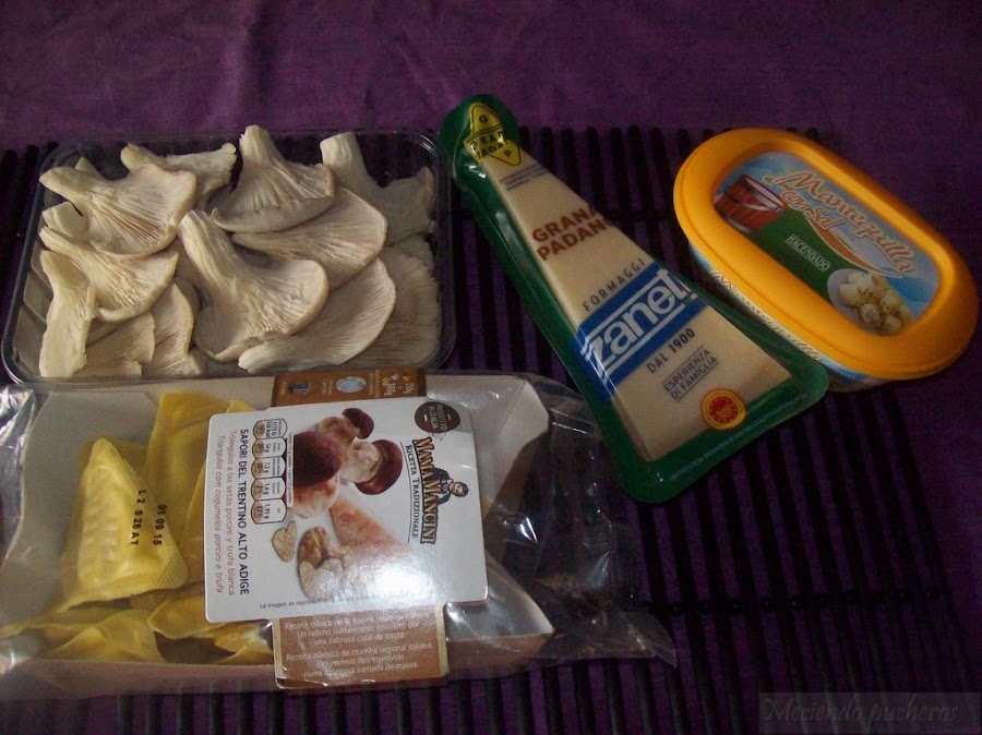 Lo único que añadí fue unas setas de ostra ya que el relleno está compuesto por otros dos hongos y pensé que iba en consonancia con el conjunto.