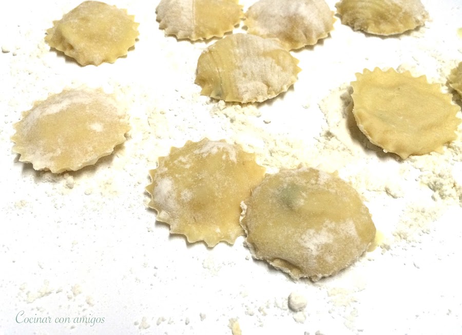 Alguna que otra vez he hecho pasta fresca casera con mi máquina para hacer pasta Imperia, que es una maravilla como funciona, pero siempre me había quedado con las ganas de preparar unos raviolis con este relleno y que mejor ocasión que para este desafío.