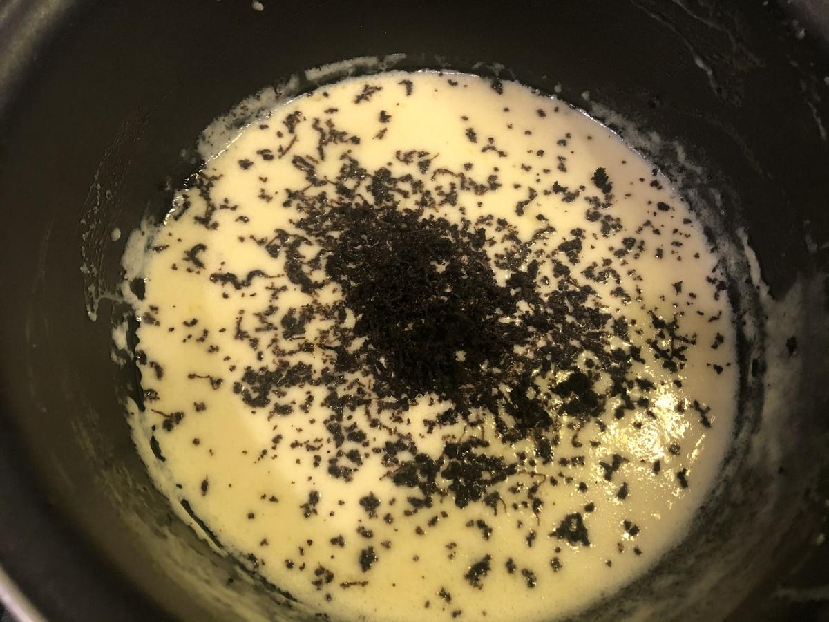 5. Rallamos la trufa fresca sobre la salsa, la cantidad que nos parezca bien. Removemos y dejamos hasta que la vayamos a utilizar.