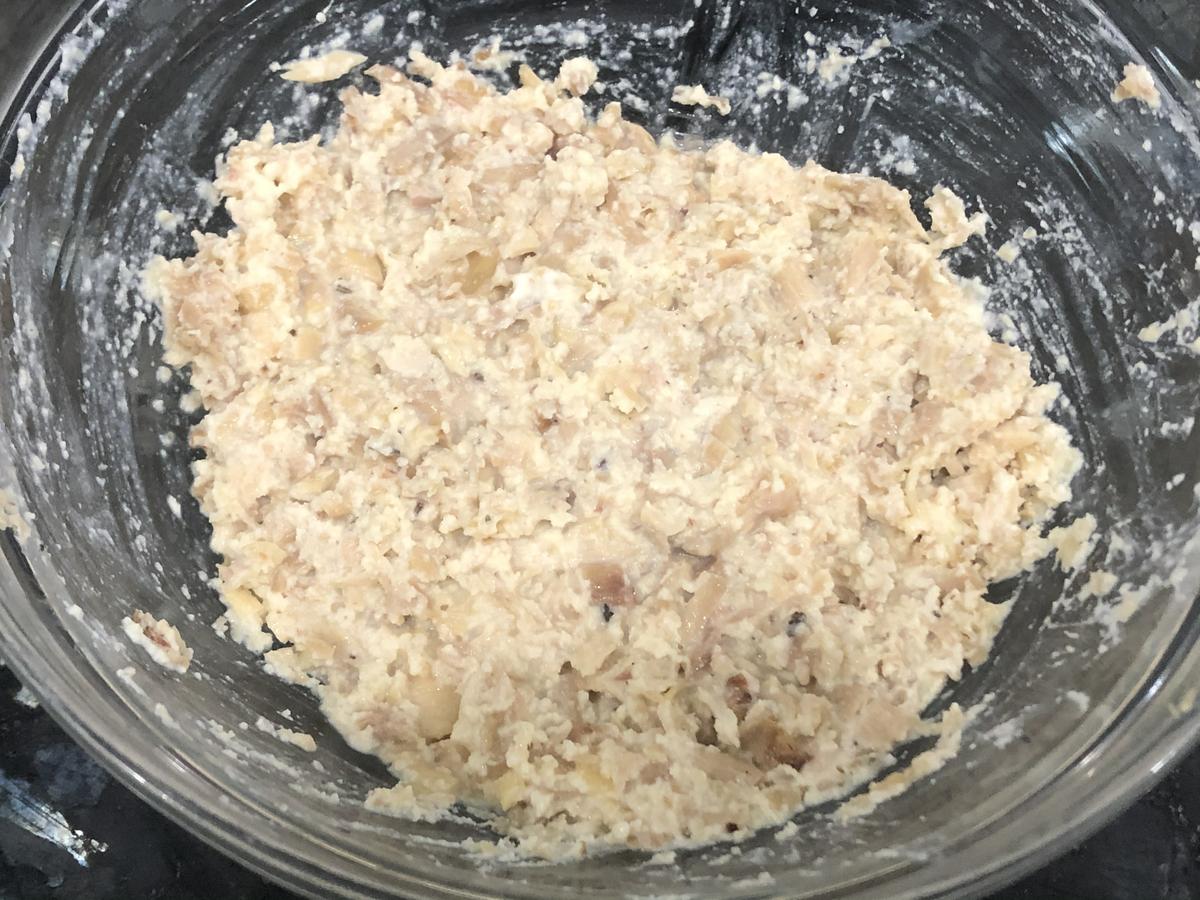 Este relleno es de cocina de aprovechamiento, con un poco de pollo que nos sobró de cuando asamos unos días atrás.