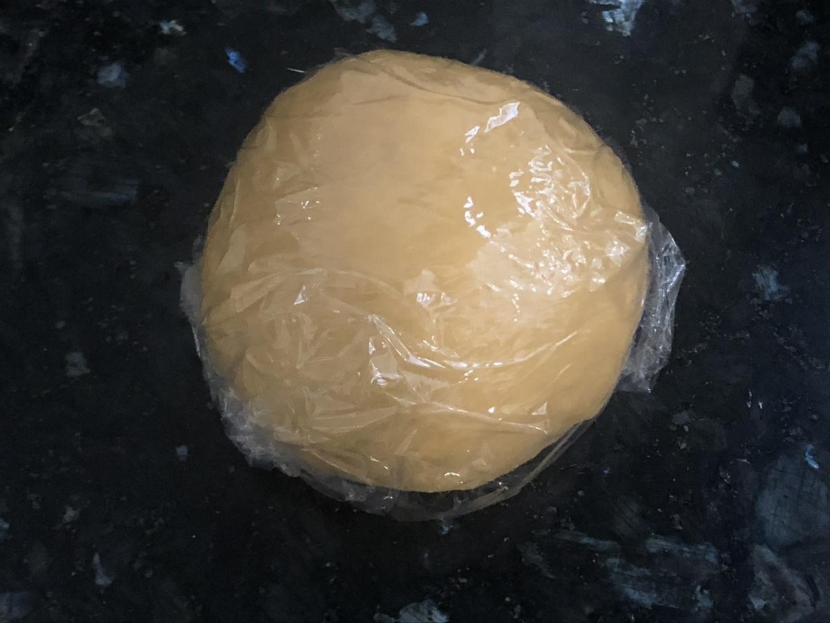 Tapamos con film y dejamos reposar en la nevera al menos 30 minutos. El reposo es fundamental para que la masa sea flexible y se estire bien.