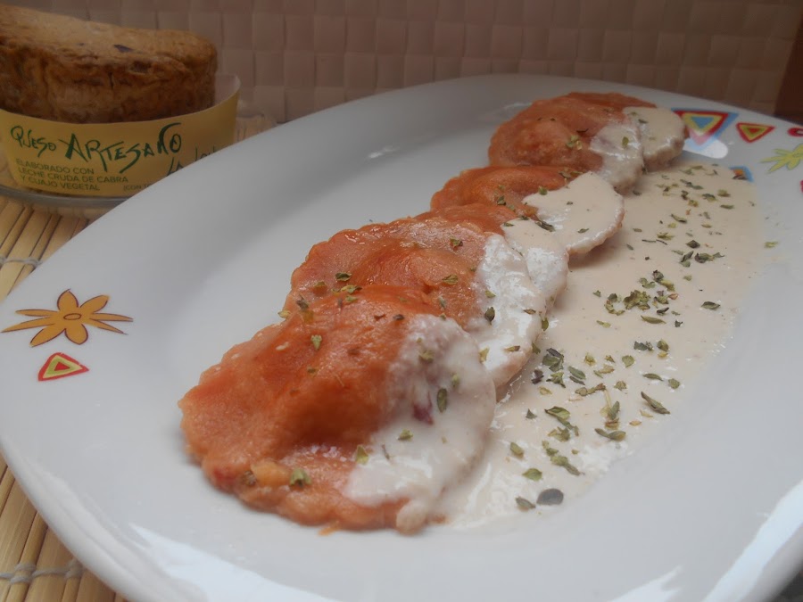 Hoy os traigo un recetón unos raviolis de pasta casera de tomates secos rellenos de queso artesano LA LOMA de tomate y oregano, simplemente espectaculares.