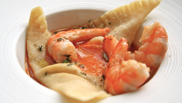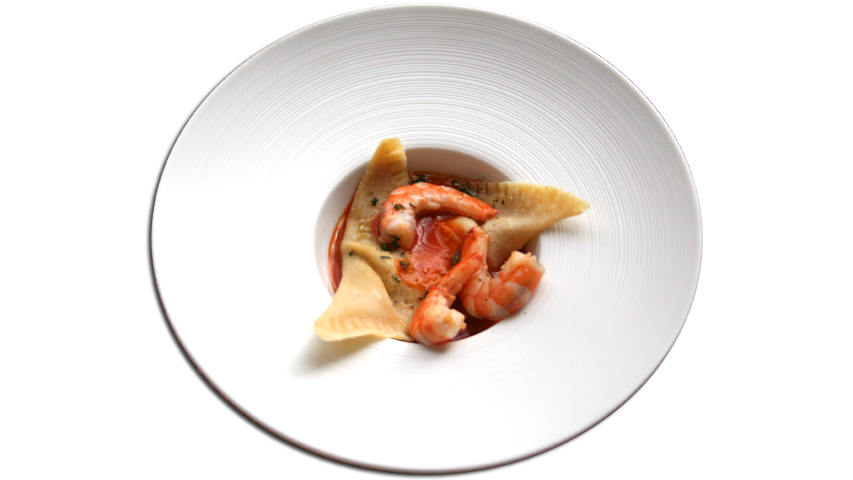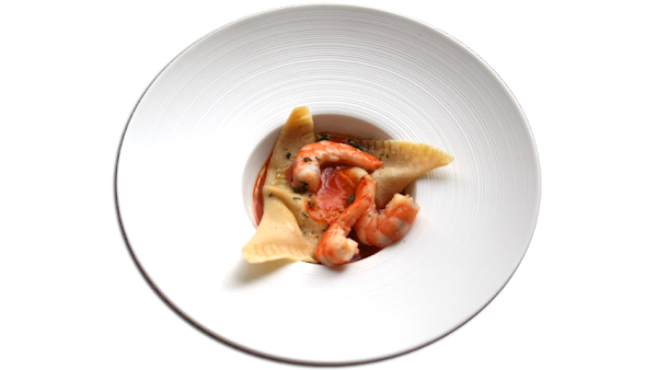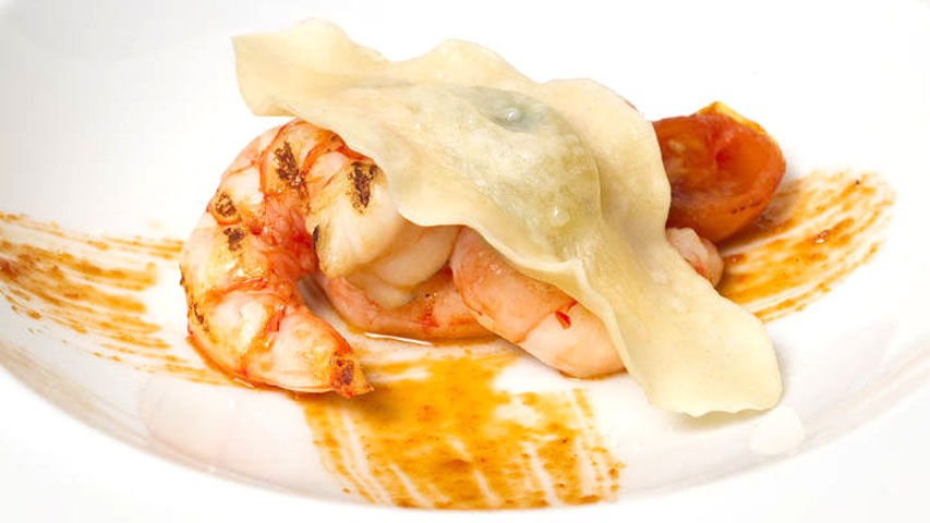 "Ravioli invertido de gamba roja" fotografía tomada prestada de MASTERCHEF