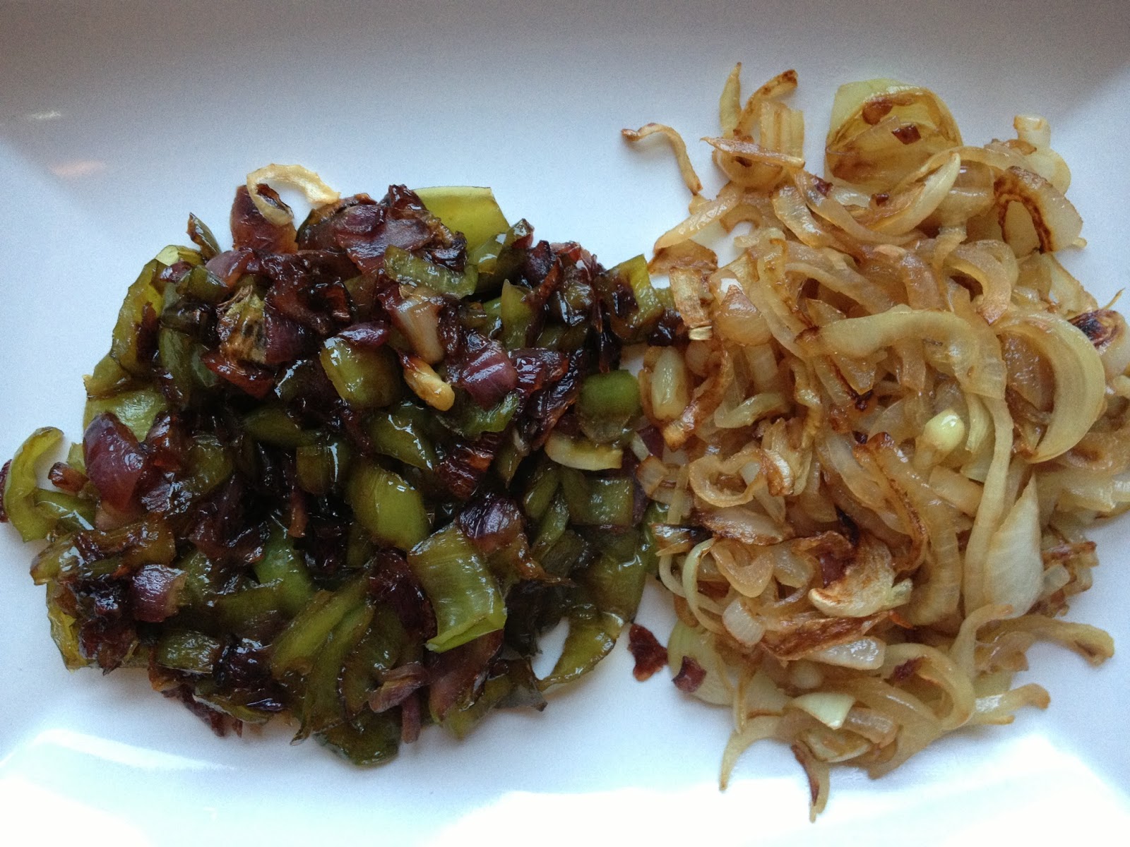 Cuando veamos que el aceite esta caliente, vertemos los pimientos junto a la cebolla cortada , añadiendo un poquito de sal y bajamos el fuego al mínimo , para que se cocinen bien y se queden bien pochados ..