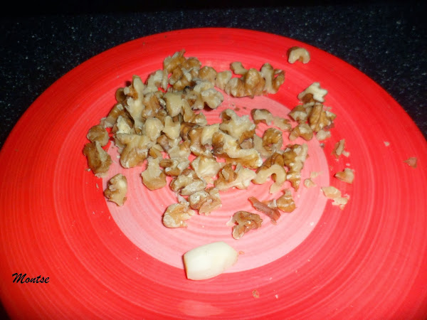 Reservamos. Cogeremos las nueces picadas y el ajo.