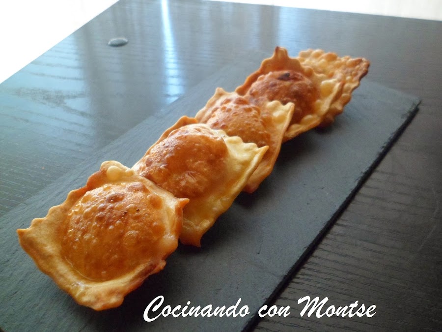 Y ahora os voy a enseñar otro plato que preparé con los raviolis rellenos de pera y queso, me quedo un aperitivo riquísimo, nos gusto mucho y ahora que vienen estas fiestas los podemos hacer y sorprender a nuestros invitados.