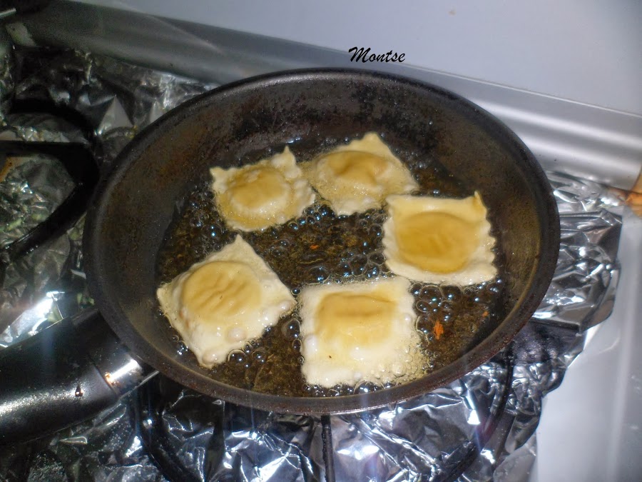 Sacaremos los raviolis de la bolsa y pondremos una sartén con aceite a calentar.