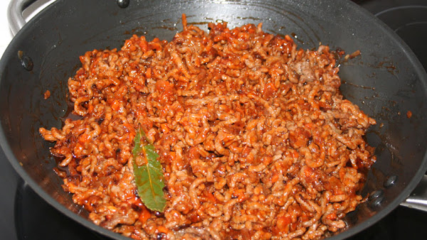 Este es el relleno que tenía preparado de "boloñesa": ternera picada salteada con verduras y salsa de tomate.