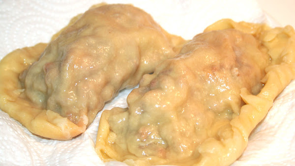 Un ravioloni cerrado y otro antes de sellarloTras poner un poco de "boloñesa" en cada rectángulo de pasta fresca, los cerré como me salió en ese momento, tipo empanadilla o calzone. No se explicar muy bien como porque no tengo una técnica para estas cosas, simplemente me limito a cerrar lo mejor que puedo para que no se salga el contenido.