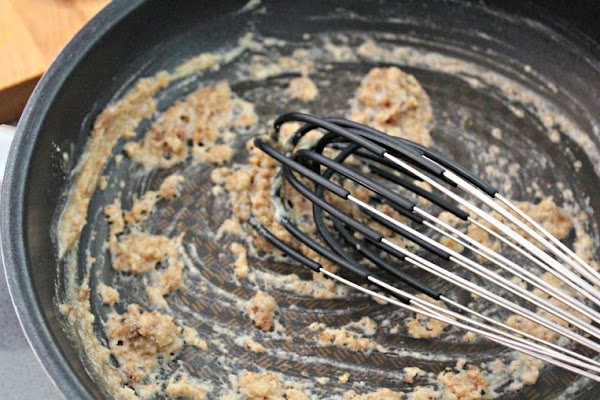 En la misma sartén, ponemos una cucharada de harina y una cucharada de miso rojo.
