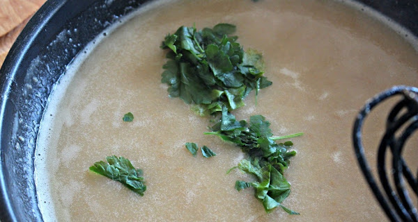 Añadimos el caldo, removemos bien para que no queden grumos.