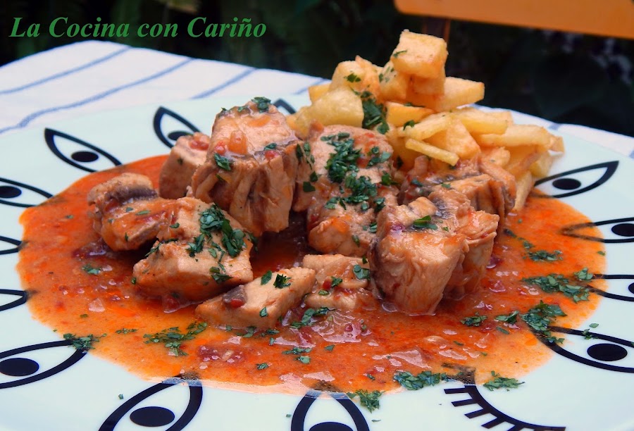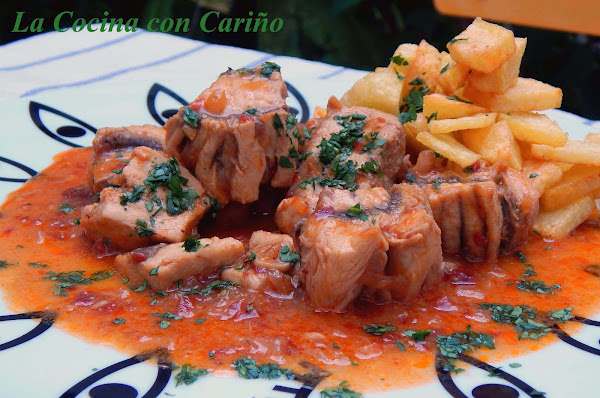 Cuando comienza a espesar, colocamos los trozos de raya y dejamos unos 3 minutos, les damos la vuelta y tras un minuto más, apagamos, tapamos y dejamos reposar unos 3 ó 4 minutos más. Tras resto, y con unas papas fritas el manjar está listo.