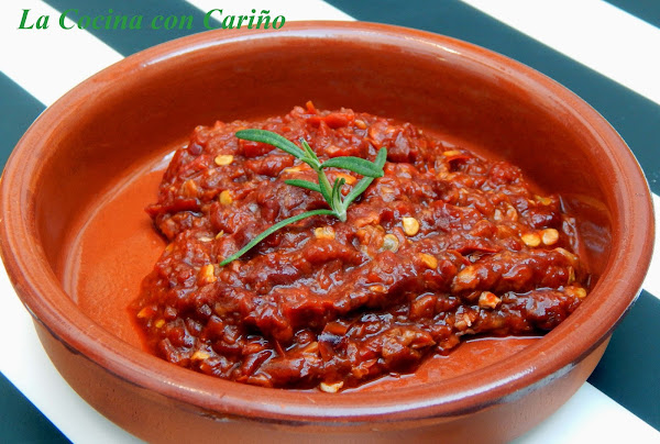 En el aceite caliente y a fuego medio, ponemos los ajos cortados en láminas y cuando empiecen a dar olor, añadimos la cebolleta, con un poco de sal para que sude y casi al minuto, el tomate. Cuando este haya reducido, ponemos la pulpa de las ñoras y tras sofreír un minuto, añadimos la harina. La doraremos un poco, un minuto, más o menos y luego el vino. Dejamos evaporar el alcohol y vertemos unos 4 ó 5 cazos del caldo de pescado. Salpimentamos y dejamos reducir hasta que veamos que empieza a espesar.