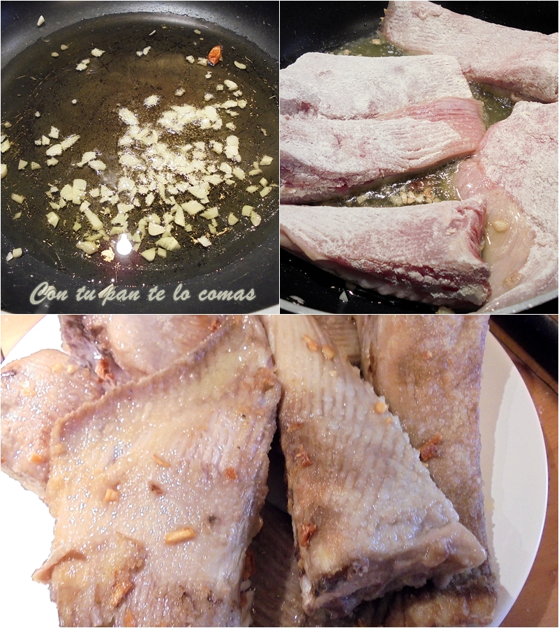 2. En la pescadería te darán la raya limpia y sin piel, porque es imposible quitarla en casa. Si los trozos son muy grandes como los de esta receta, mejor trocearlos (siempre a lo largo). Sazónalos con sal y rebózalos en harina.