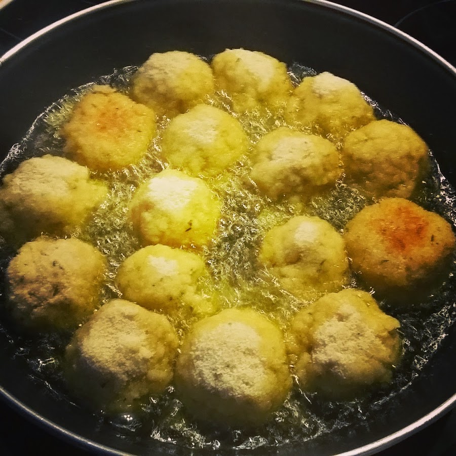 Empana y fríe en una sartén hasta que se doren. Escurrir en papel de cocina y servir.