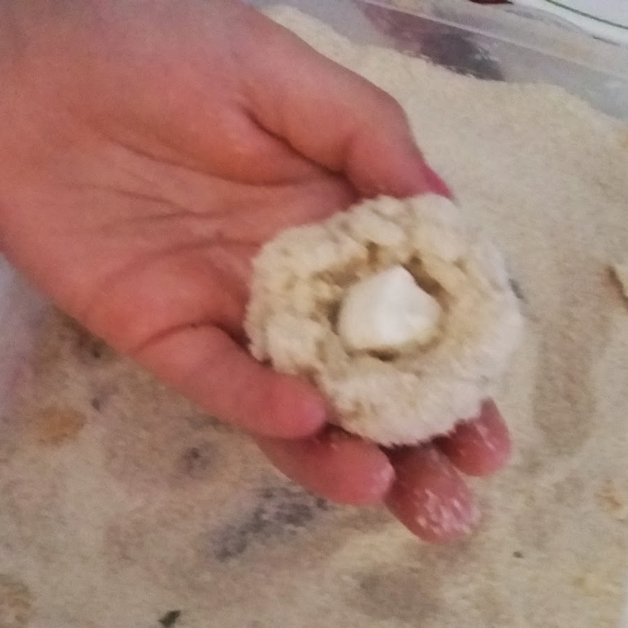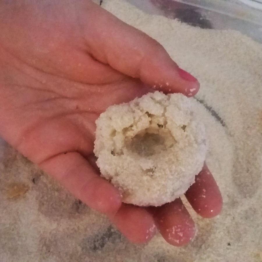 Con una cuchara de risotto hacer una bola y con el dedo hacer un hoyo en el centro.