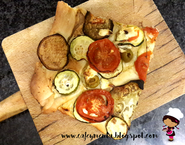 Se tiene que servir rápido, calentita está más sabrosa! Ya véis que fácil es preparar esta coca de verduras, además de ser un buen sustituto de la pizza que mucha gente -me incluyo- suele hacer un domingo por la noche para cenar...