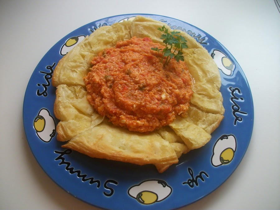 - Poner una base de hojaldre previamente horneada y montar el plato: Troceamos todo junto antes de ponerlo en el hojaldre. Tambien se puede acompañar con unas pequeñas tostadas untadas con este picado.