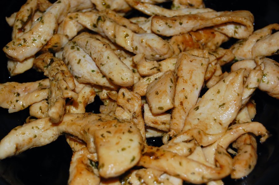 - Salteamos el pollo especiado y añadimos a los calabacines. Como los calabacines sueltan un poco de agua, dejamos reducir para que se mezclen bien los sabores con el pollo.