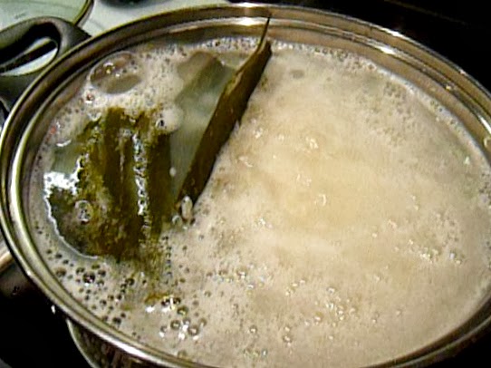 2.- Entre tanto, en una cazuela pongo el agua necesaria para luego cocer el arroz junto con el alga Konbú para que se vaya hidratando (el alga se pone sin lavar para que no pierda sabor) y el sake; 5 cc. serán suficientes).