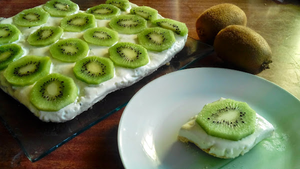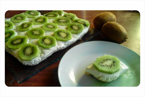 Hoy les presento un postre riquísimo, unas Barras de Queso y Kiwi que además no se hornea, y sabe espectacular, tan cremoso como un helado de vainilla y kiwi!!!
